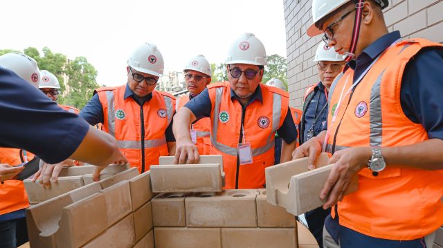 Komisaris Utama SIG, Sigit Widyawan (tengah) dan Dirut SIG, Indrieffouny Indra (kanan) mengaplikasikan bata _interlock_ (Baca Selengkapnya)