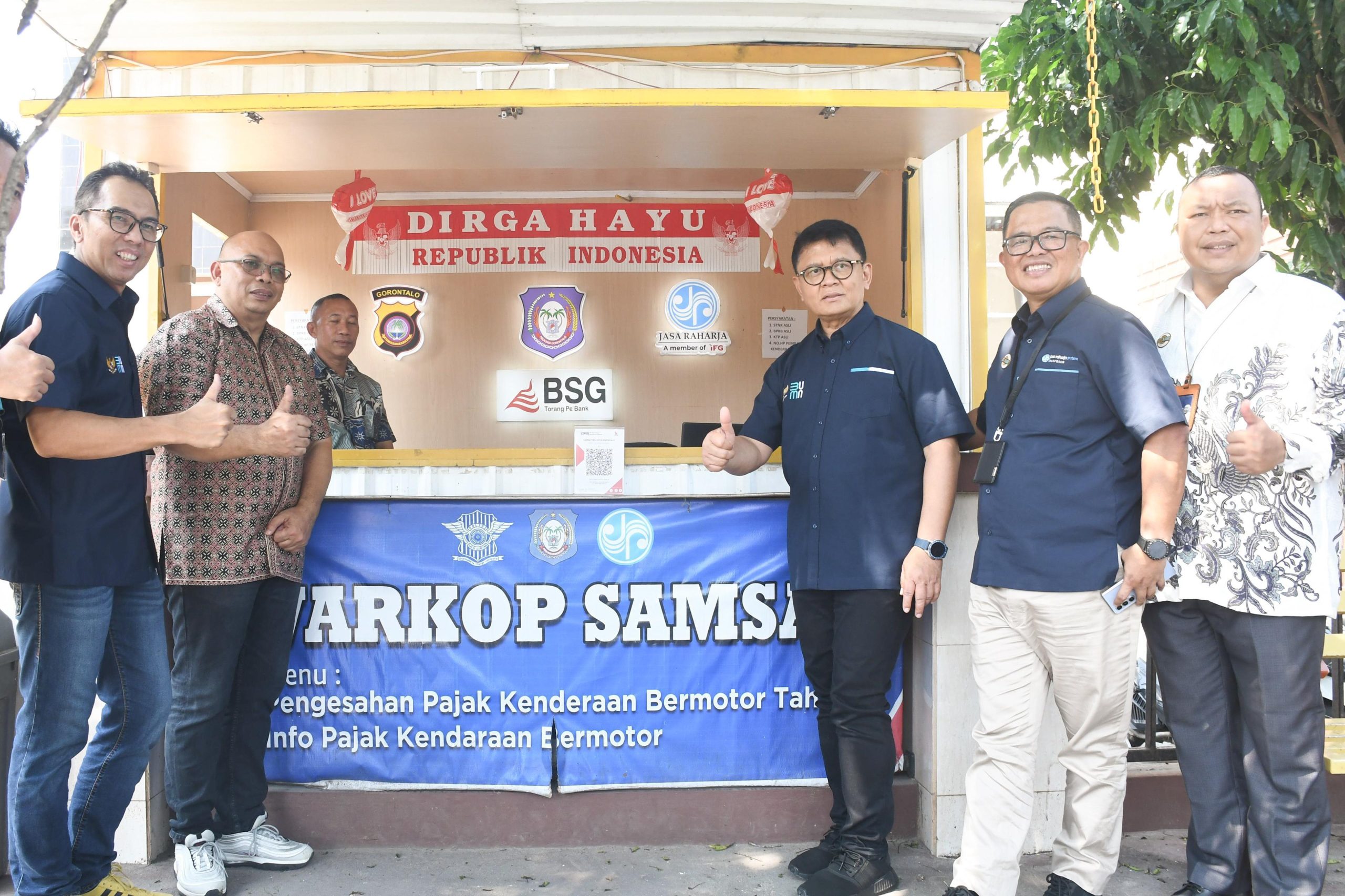 Sebagai bagian dari agenda kunjungan, Tim Jasa Raharja juga mendatangi lokasi inovatif yang dikembangkan oleh Tim Pembina Samsat Gorontalo, yakni Warkop Samsat. Warkop Samsat merupakan layanan pembayaran pajak kendaraan bermotor dan SWDKLLJ yang beroperasi pada malam hari. Dalam layanan ini, wajib pajak yang bertransaksi juga disuguhkan kopi gratis sebagai bentuk apresiasi dan kenyamanan saat membayar pajak.