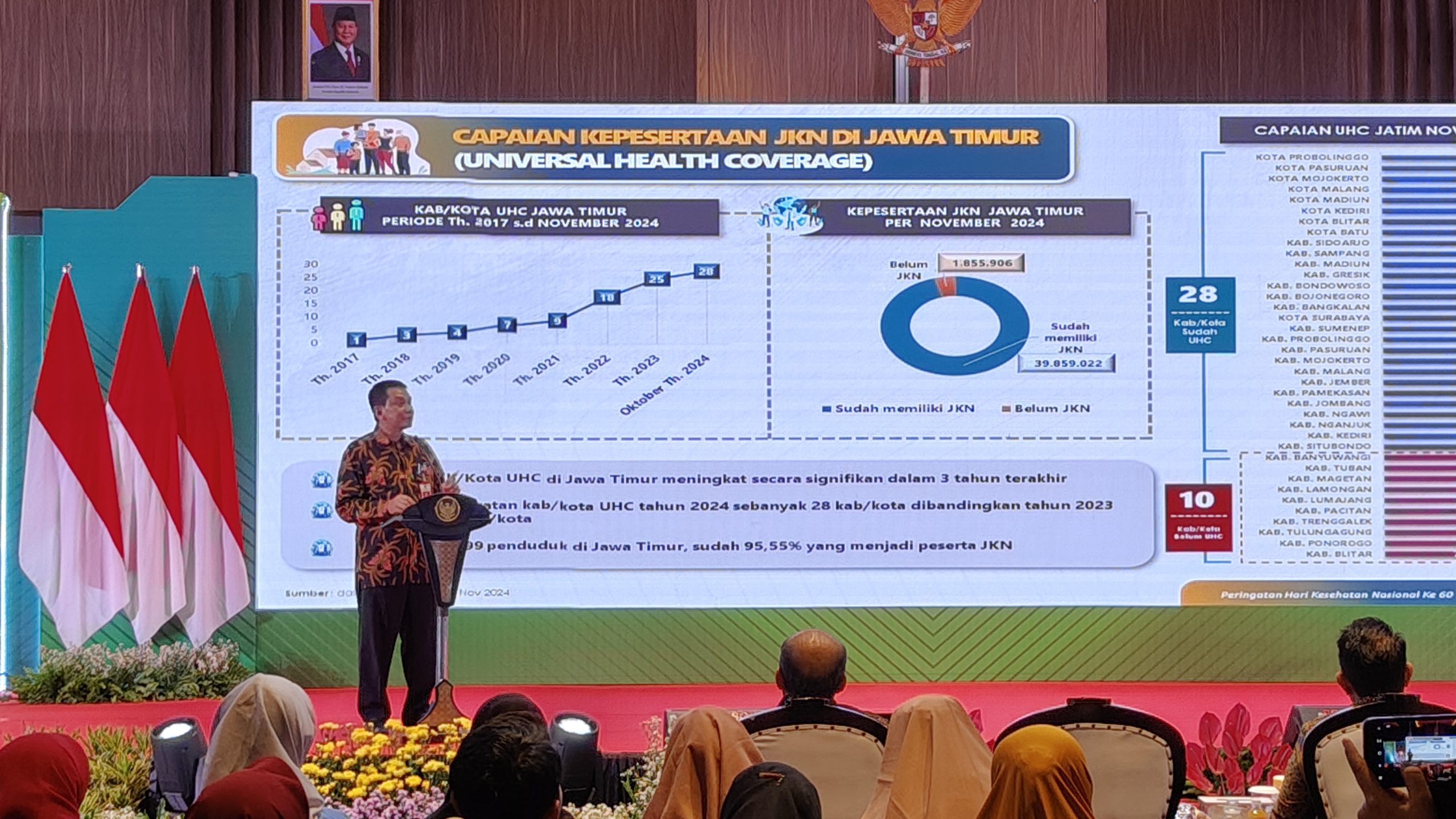 Penghargaan UHC diberikan kepada Kab. Jember, Pasuruan, Situbondo, Jombang, Kediri, Ngawi, Nganjuk, Pamekasan, Malang, Madiun dan Mojokerto.