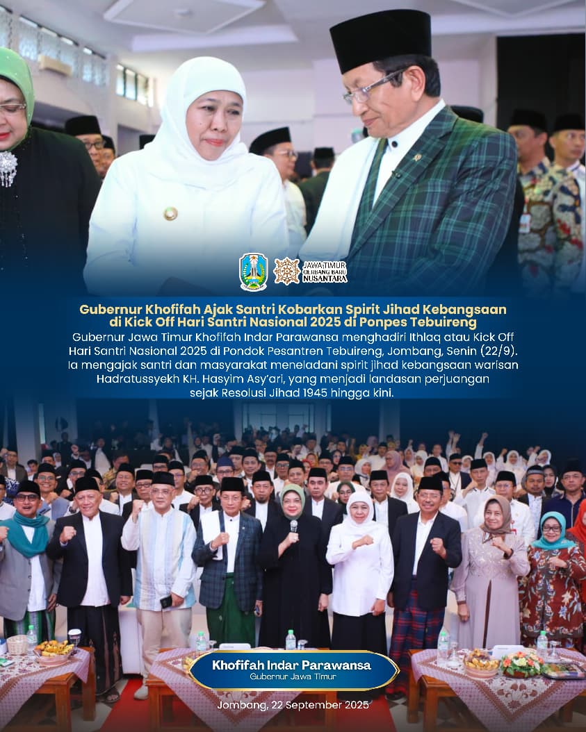 “Melalui Kick Off Hari Santri Nasional 2025 di Tebuireng ini, kami sangat berharap para santri dapat meneladani secara nyata seluruh nilai pemikiran dan semangat perjuangan para kiai terdahulu,” ujar Khofifah.