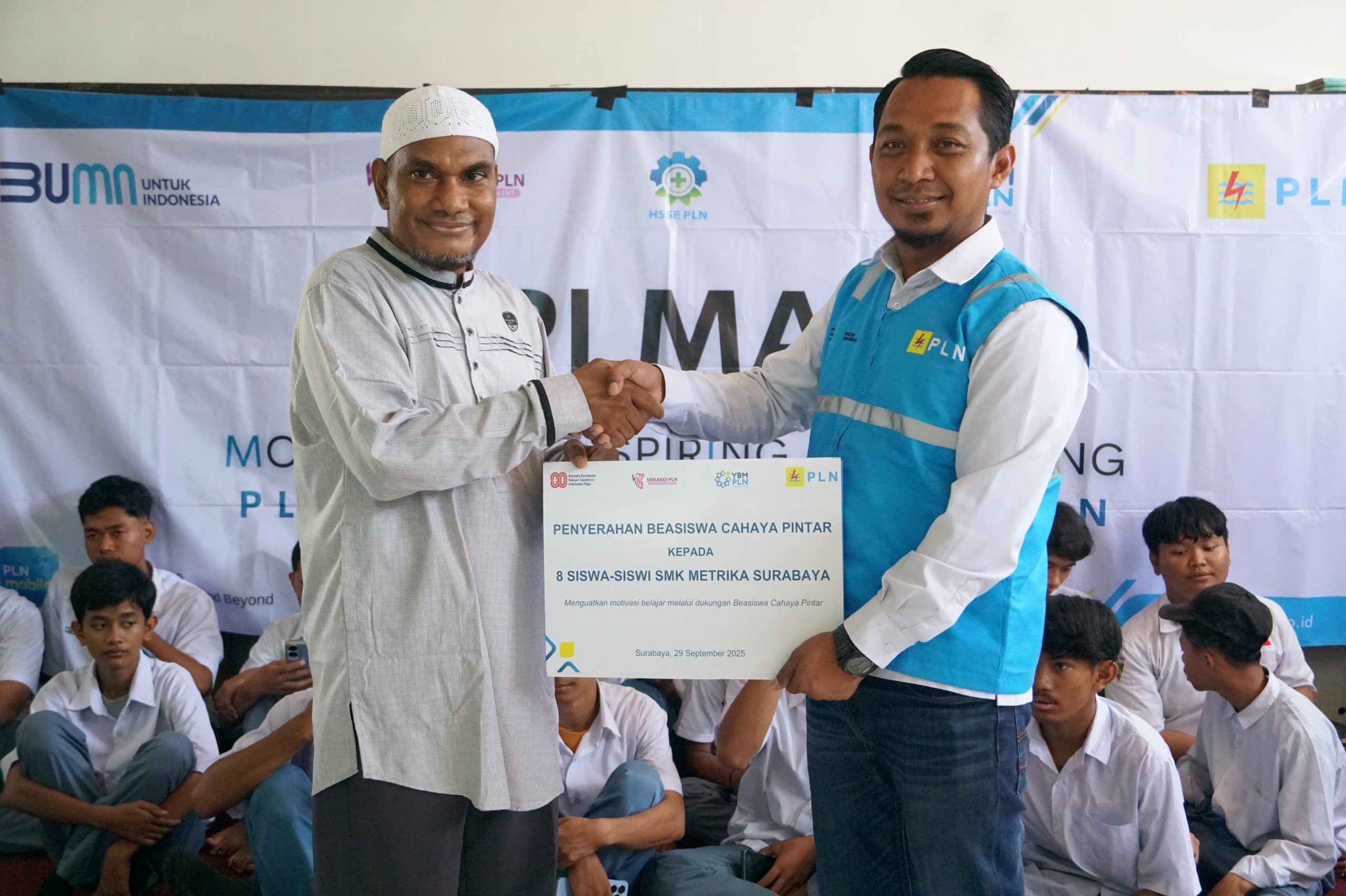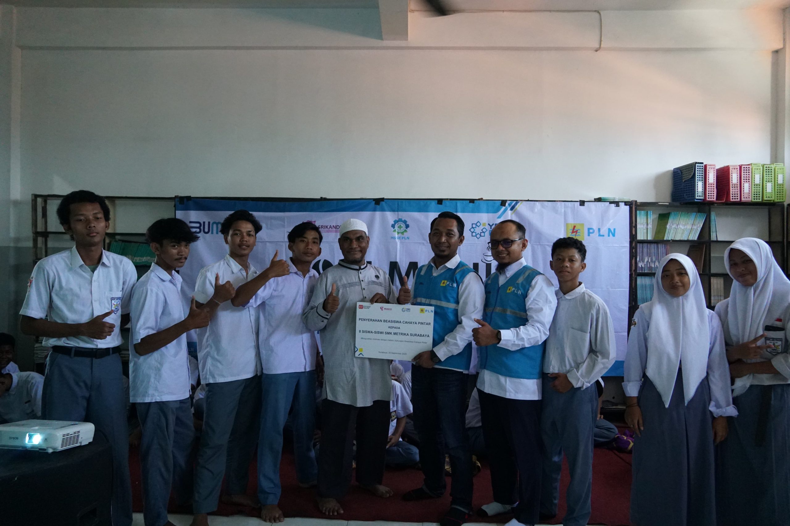 Surabaya, headlinejatim.com– Dalam rangka memperingati Hari Kesaktian Pancasila, YBM PLN bersama PLN UP3 Surabaya Selatan mengadakan kegiatan sosial yang bermanfaat bagi dunia pendidikan. Bertempat di SMK Metrika Surabaya, acara tersebut meliputi Penyerahan Beasiswa Cahaya Pintar kepada delapan siswa-siswi berprestasi dan kurang mampu, dilanjutkan dengan Sosialisasi Keselamatan dan Bahaya Kelistrikan.