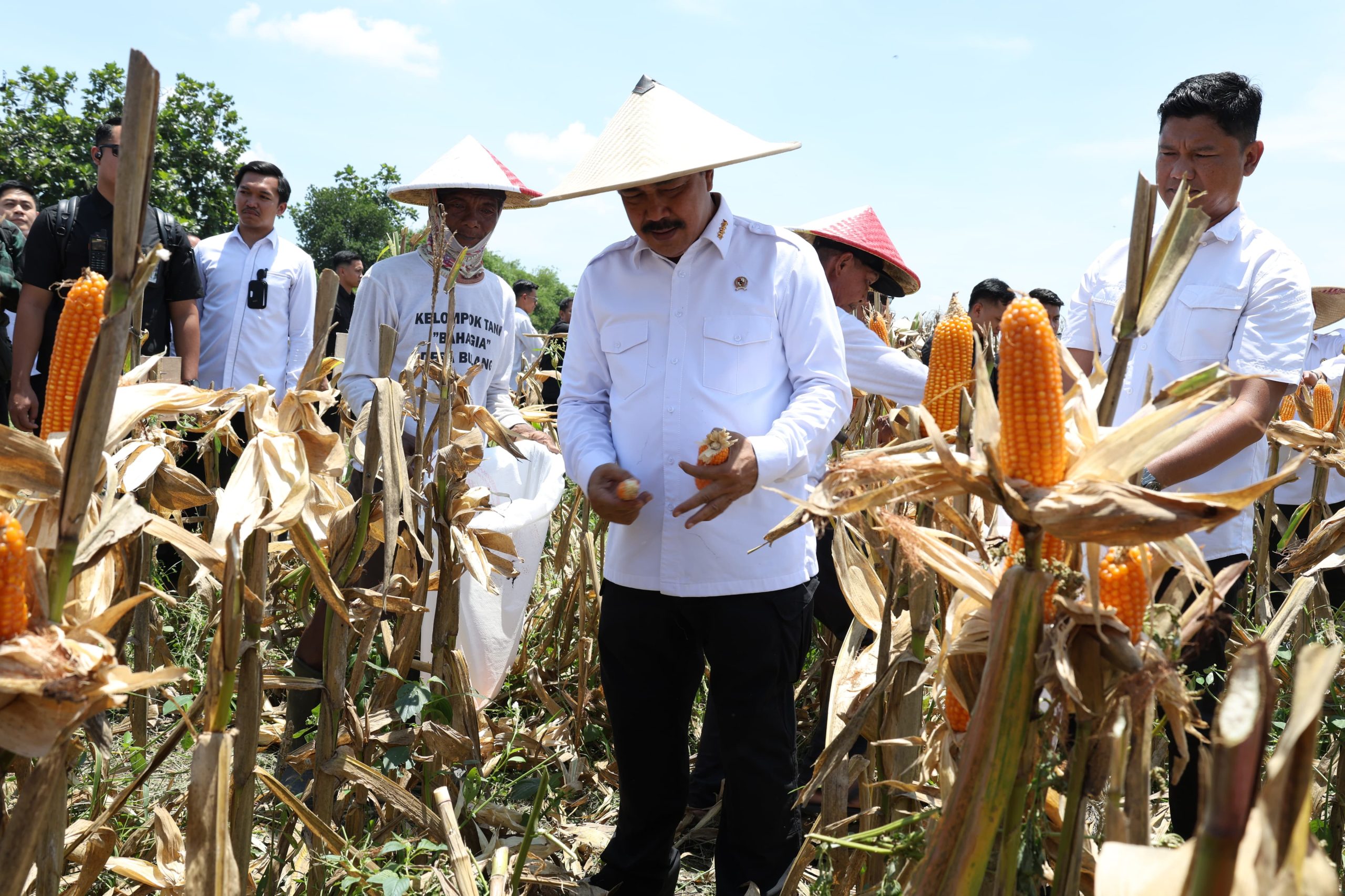 Selain kegiatan panen jagung, Menteri juga menyerahkan bantuan sarana pertanian dan sosial secara simbolis kepada perwakilan kelompok tani dan warga Desa Bulang. Bantuan tersebut meliputi cultivator type FTL 620, sprayer elektrik, benih jagung hibrida, serta paket sembako berupa minyak goreng dan gula pasir.