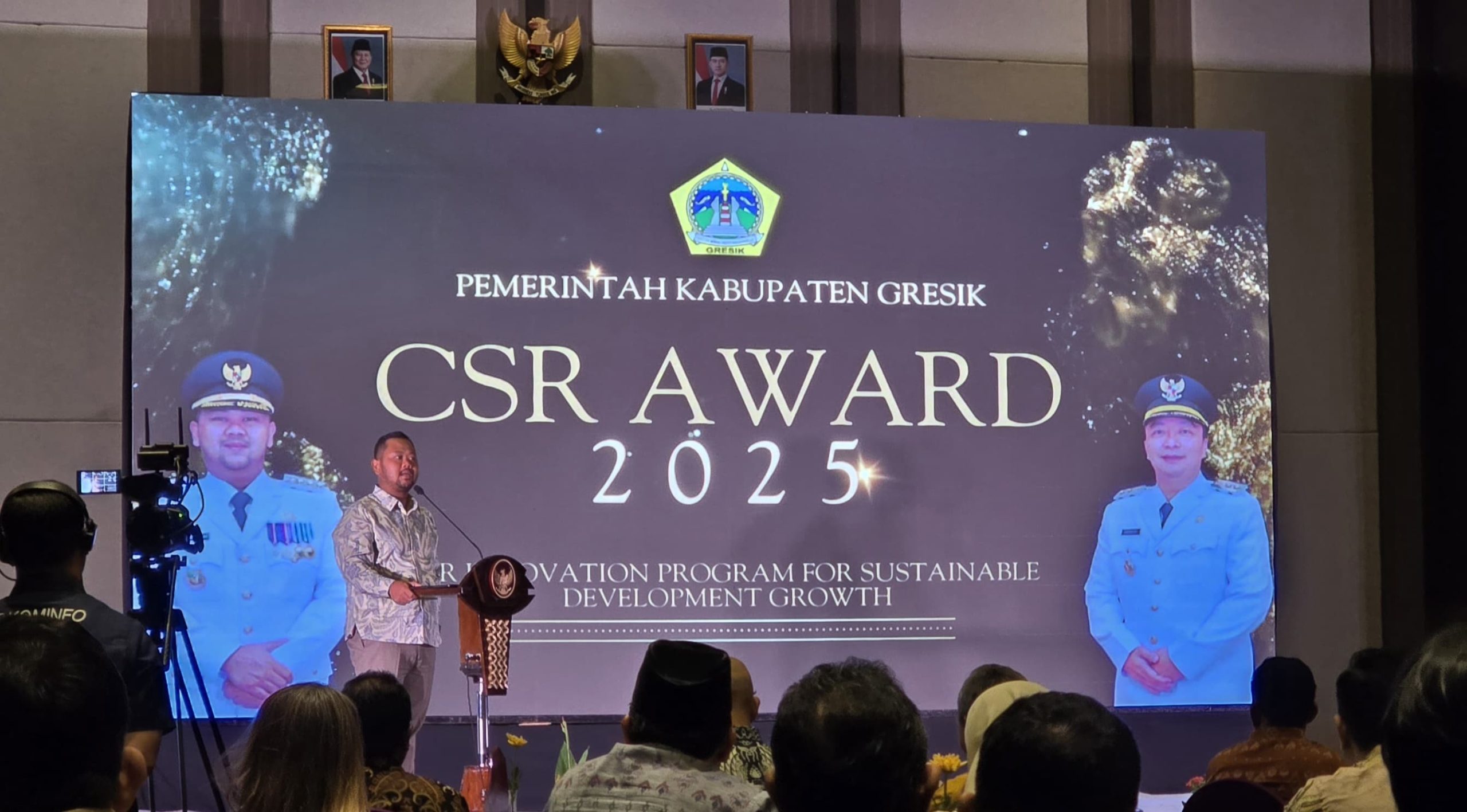 Kegiatan ini turut dihadiri oleh Bupati Gresik H. Fandi Akhmad Yani, S.E., M.MB, Sekretaris Daerah (Sekda), Ketua DPRD Gresik, serta jajaran pimpinan perusahaan dan lembaga penerima penghargaan lainnya.