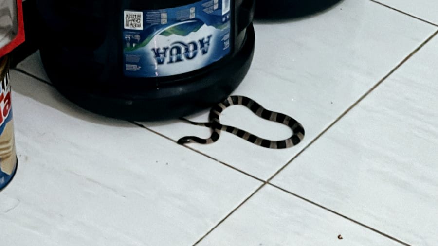 Seorang warganya, Nerry dikejutkan dengan kemunculan seekor ular weling berbisa yang berada tepat di dalam rumahnya, dekat galon air minum.