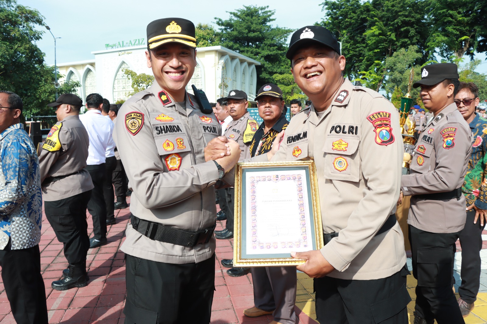 ‎Upacara dipimpin oleh Wakapolres Gresik, Kompol Shabda Purusha Putra, dan dihadiri para pejabat utama Polres serta Kapolsek jajaran. Suasana berlangsung khidmat saat para penerima penghargaan dipanggil satu per satu untuk menerima apresiasi atas dedikasi yang mereka tunjukkan.