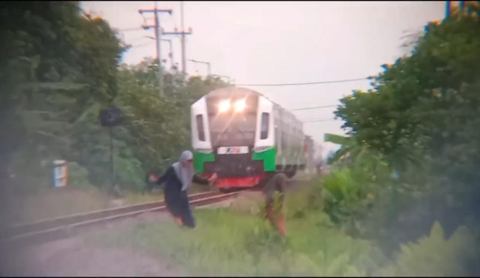 Viral Dua Bocah Bermain Saat Kereta Melintas di Sidoarjo
