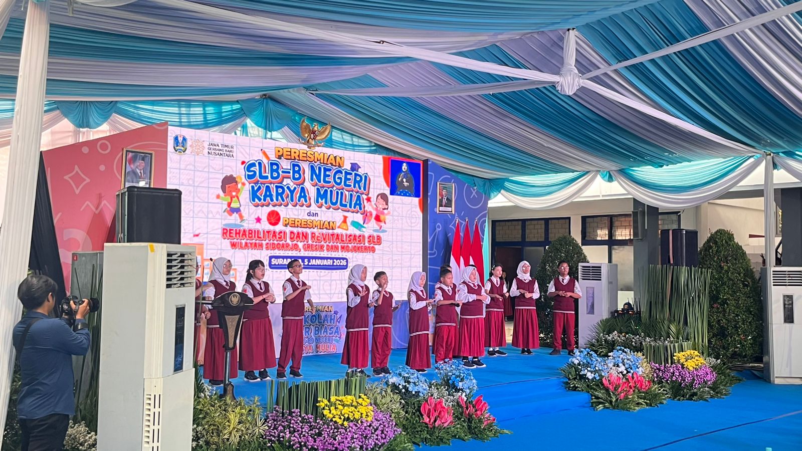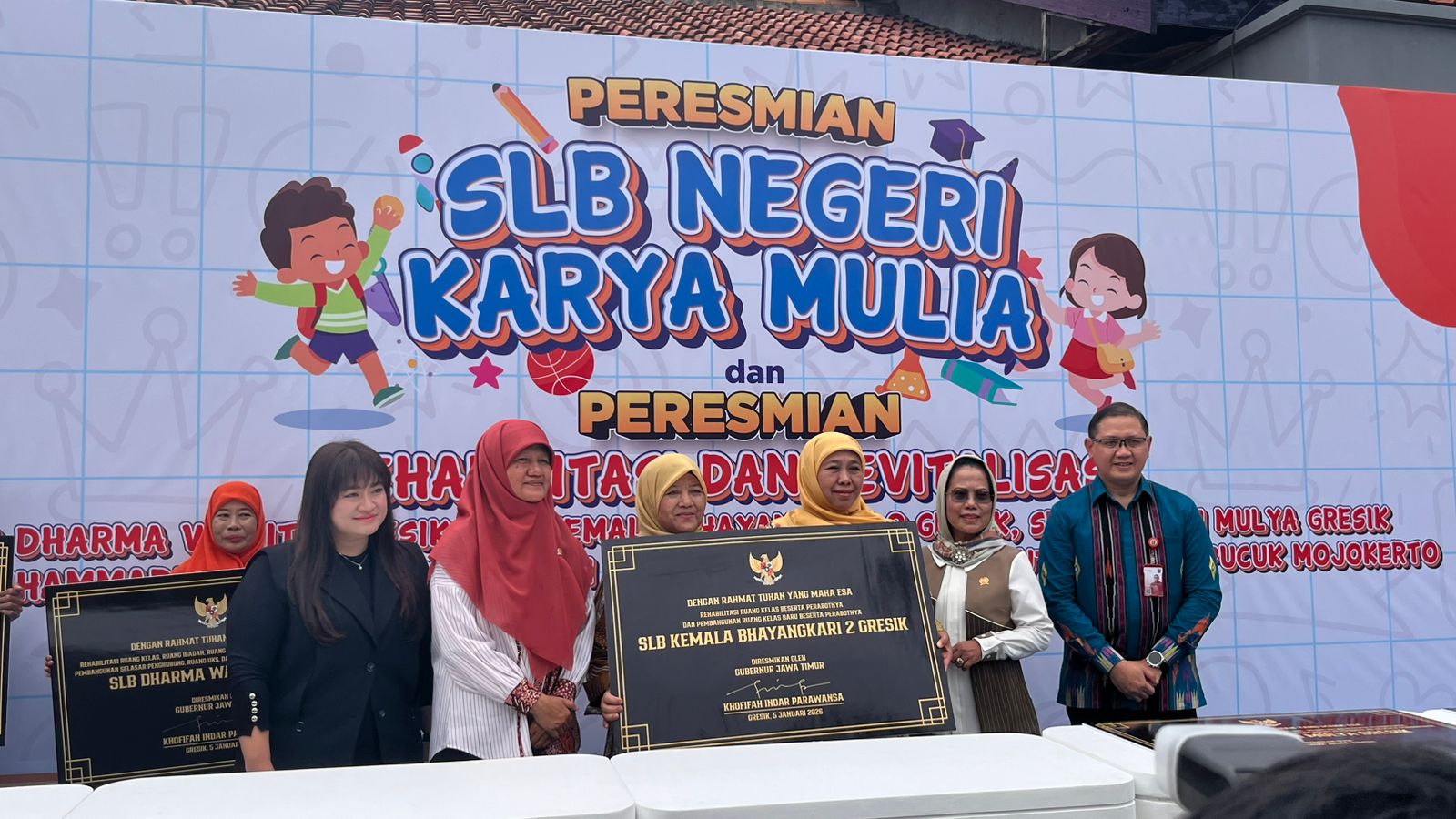 Selain meresmikan SLB Negeri Karya Mulia, Khofifah juga meresmikan hasil rehabilitasi dan revitalisasi sejumlah SLB di wilayah penyangga, seperti Sidoarjo, Gresik, hingga Mojokerto.