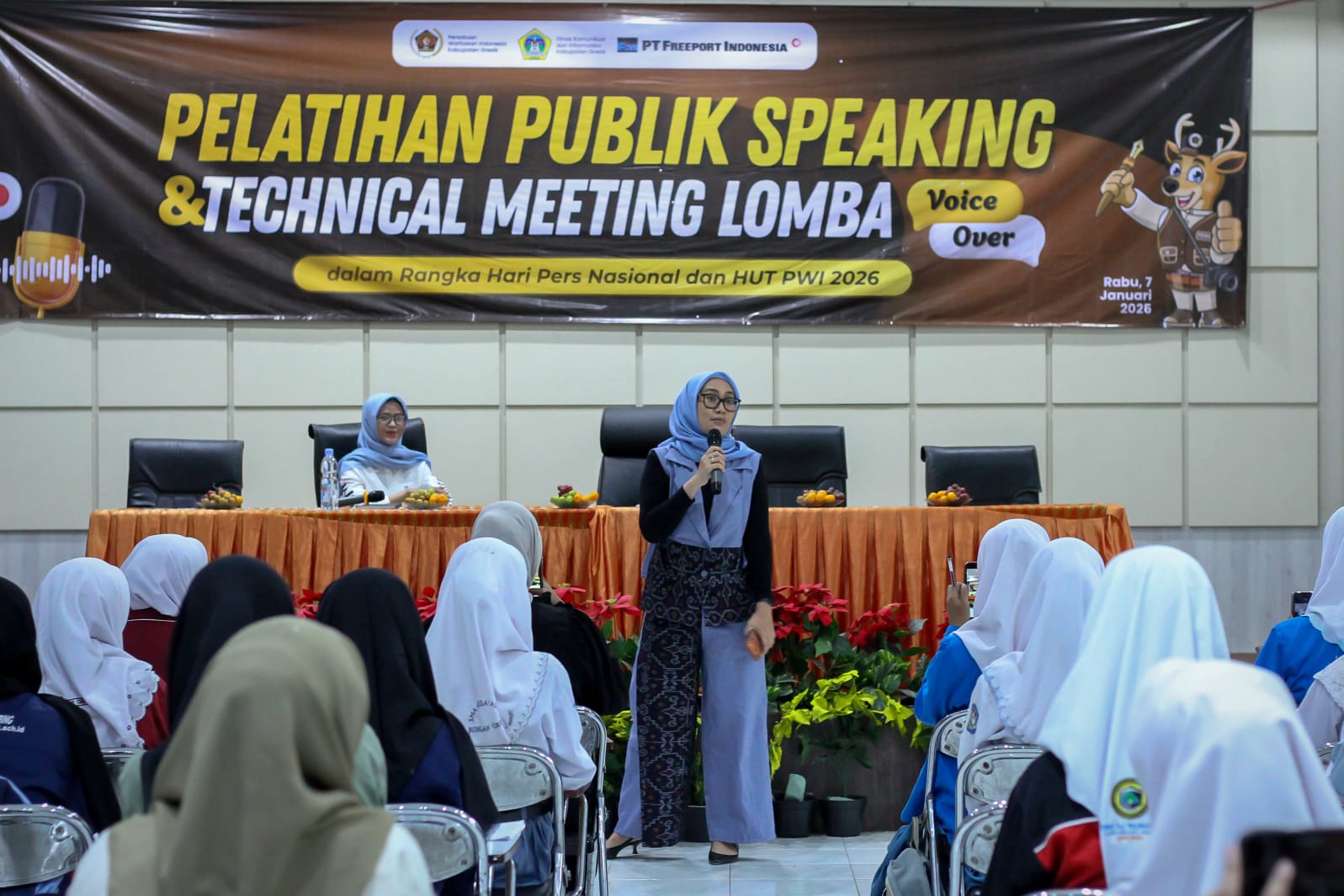 Gresik, HeadlineJatim.com – Persatuan Wartawan Indonesia (PWI) Gresik terus menunjukkan komitmennya dalam mendukung pengembangan potensi generasi muda. Melalui Pelatihan Public Speaking dan Lomba Voice Over, PWI Gresik melatih ratusan pelajar tingkat SMA sederajat se-Kabupaten Gresik, Rabu (7/1).