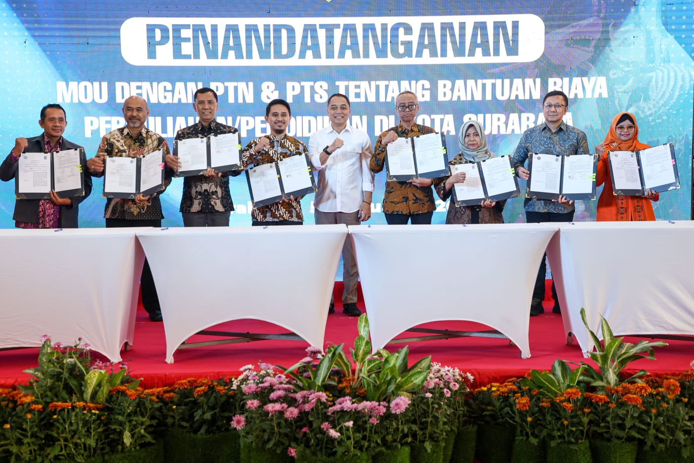 Langkah keren ini diresmikan lewat penandatanganan nota kesepahaman (MoU) dengan 8 Perguruan Tinggi Negeri (PTN) dan 24 Perguruan Tinggi Swasta (PTS) di Balai Kota Surabaya, Kamis (5/2/2026). Intinya, mahasiswa ber-KTP Surabaya dari keluarga kurang mampu bakal dikaver biaya kuliahnya.