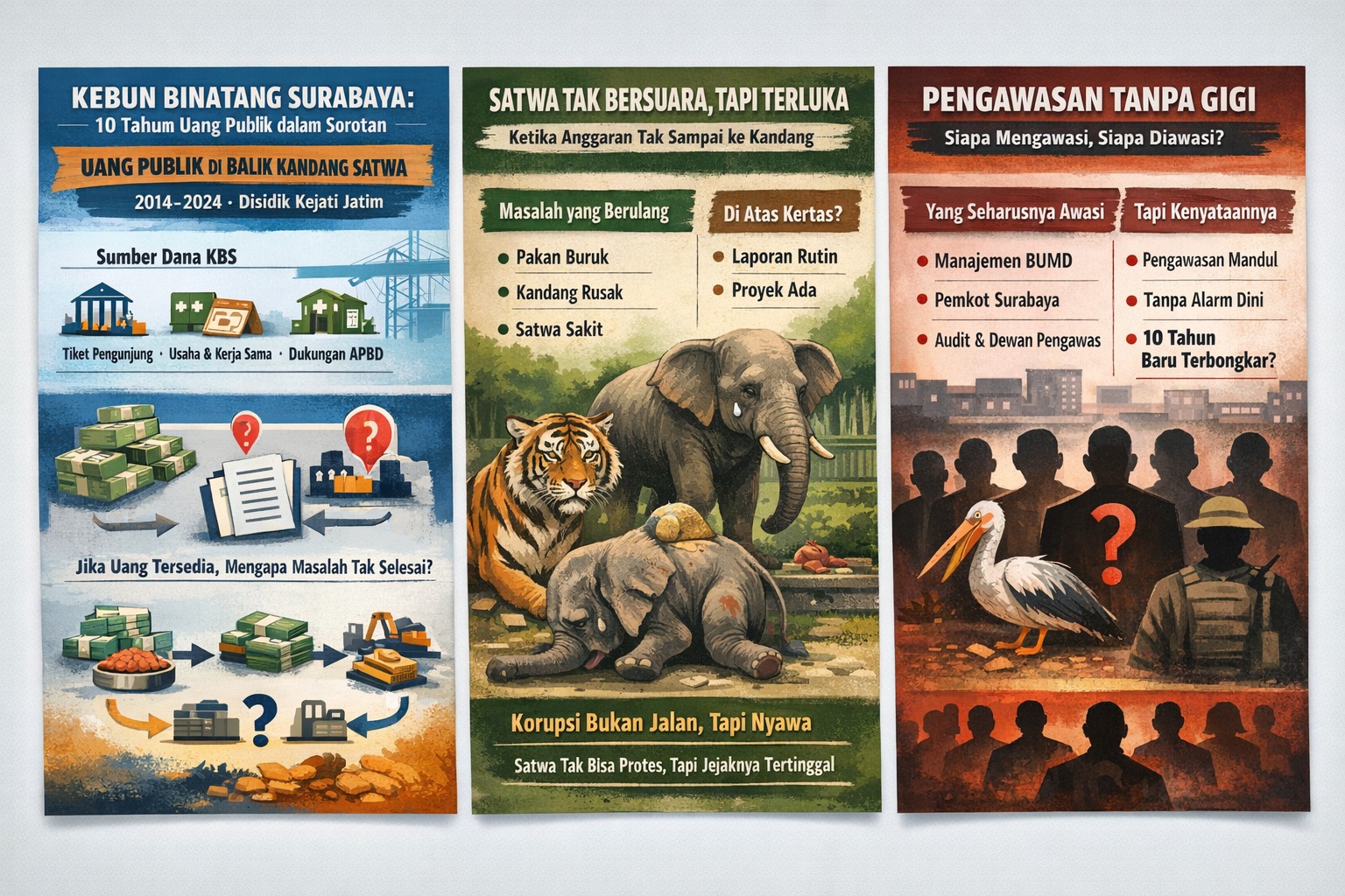 Ketika keuntungan tidak maksimal, publik jarang bertanya. Satwa mati, isu dianggap teknis. Laporan keuangan rapi, pengawasan merasa cukup. Penyidikan Kejati Jatim kini menguji asumsi: apakah pengawasan selama ini hanya berhenti di atas kertas?