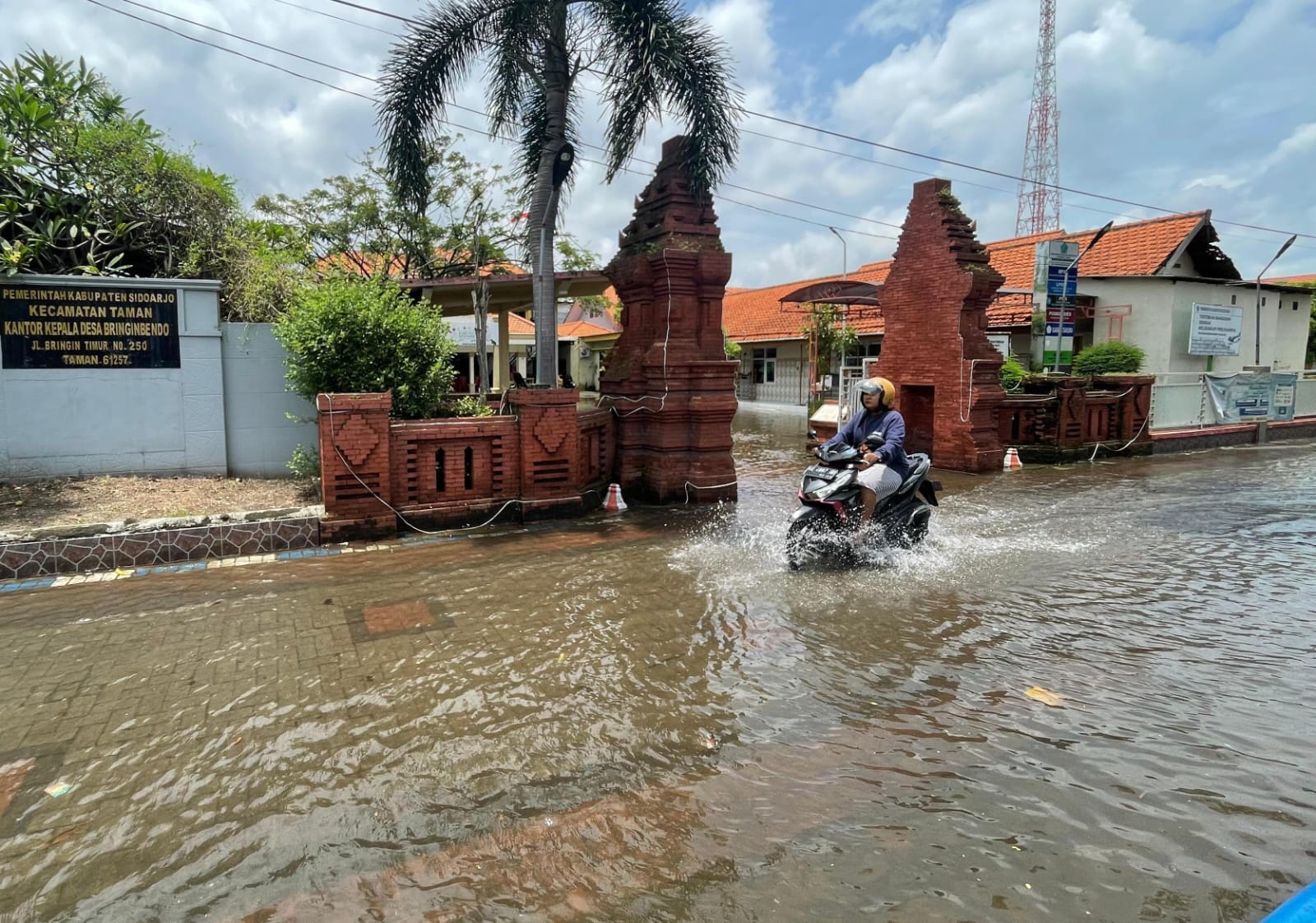 Kondisi banjir di depan balai desa Bringinbendo, kecamatan Taman, Sidoarjo.(Foto: Fariz)
