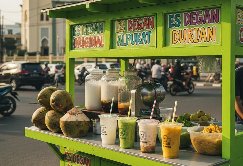 Meski awalnya sempat ragu, Yudha kini mampu membuktikan bahwa usaha kecil-kecilan pun bisa menghasilkan pendapatan yang setara dengan gaji kantoran. Kuncinya ada pada inovasi; ia tidak hanya menjual es degan original, tapi juga varian kekinian seperti es degan alpukat dan es degan durian yang sangat diminati anak muda.