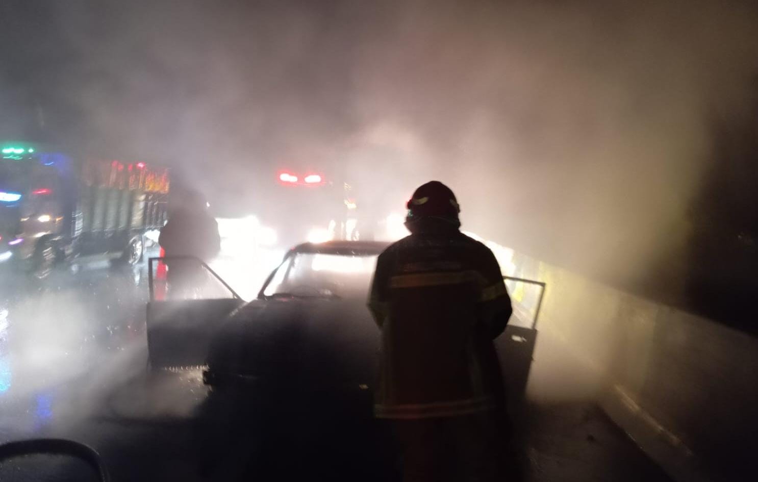 Saifur mengaku mencium bau menyengat di dalam kabin, yang kemudian disusul kepulan asap putih dari balik kap mesin. Menyadari ada yang tidak beres, ia langsung mengarahkan kendaraan ke bahu jalan untuk melakukan evakuasi darurat.