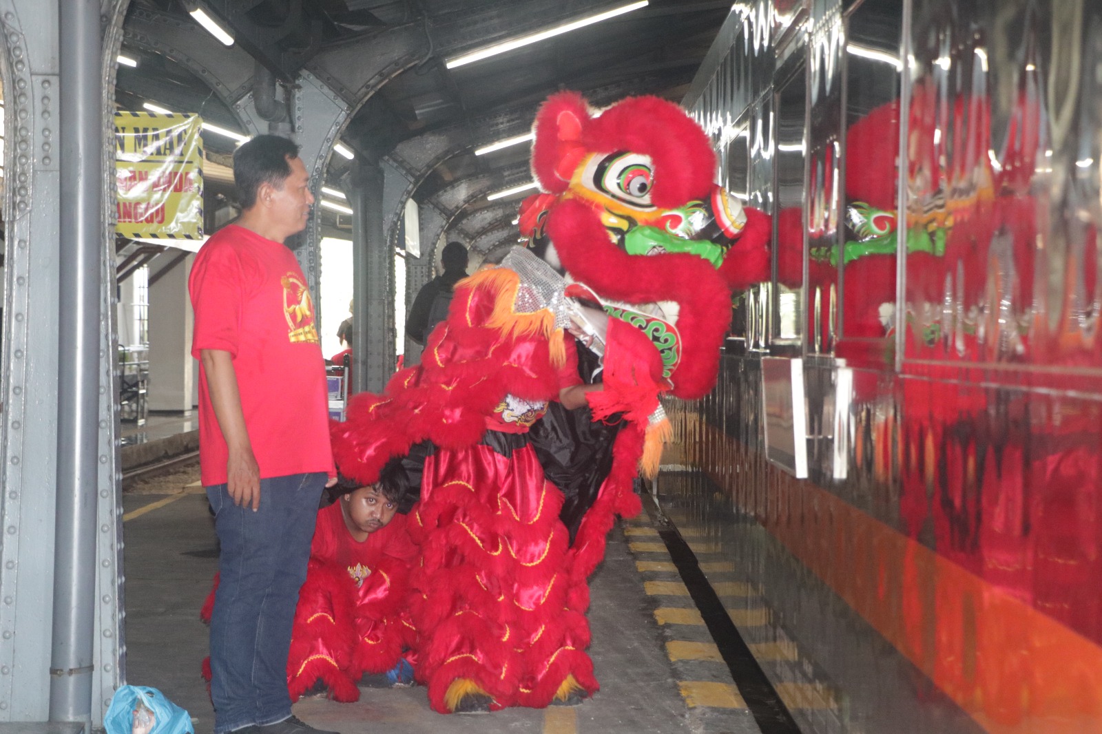 Aksi Barongsai yang lincah menyapa penumpang mulai dari area parkir hingga halaman stasiun. Tidak hanya di Jember, kemeriahan serupa juga dihadirkan oleh PT Kereta Api Indonesia (Persero) Daerah Operasi 9 di Stasiun Banyuwangi Kota.