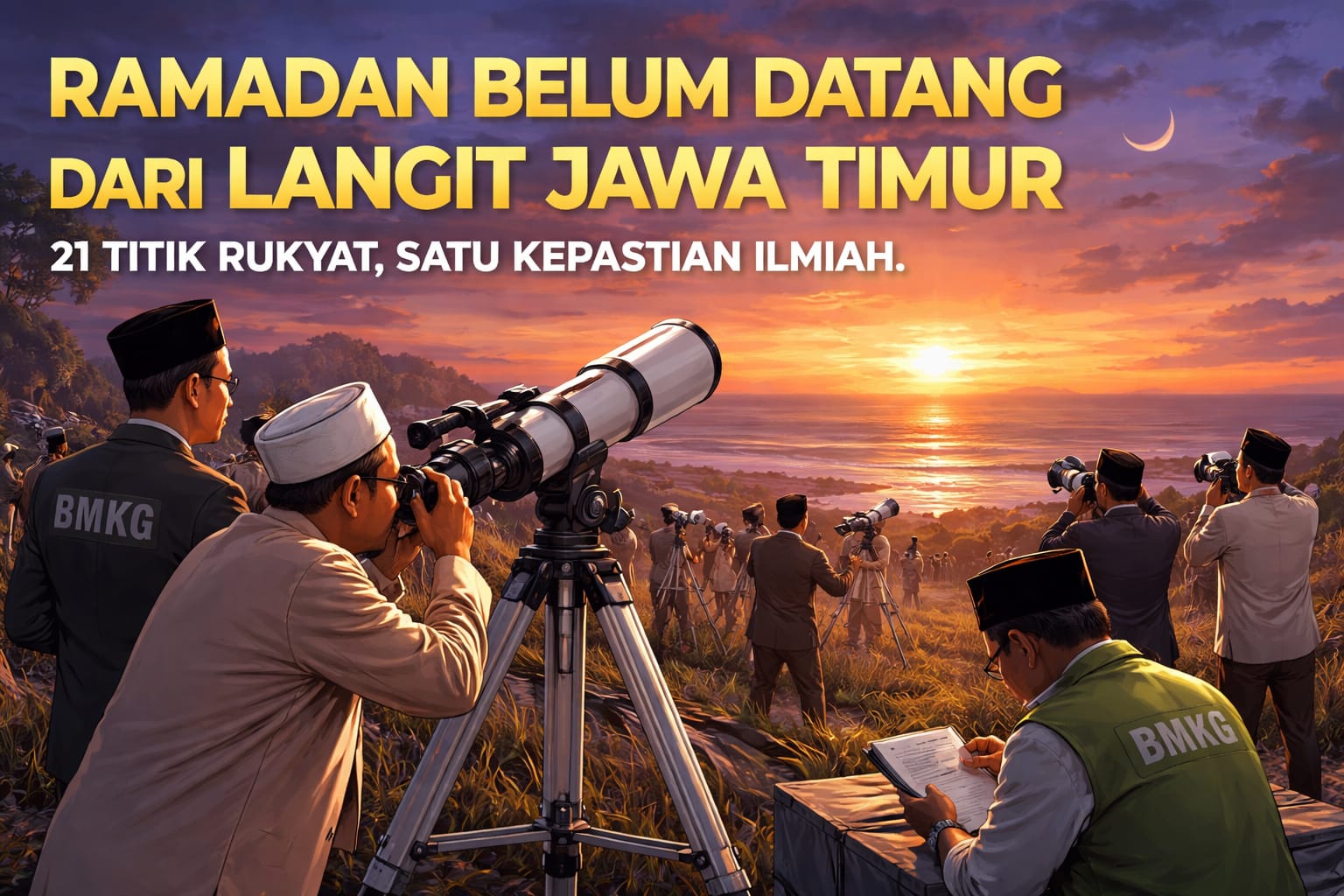 Kantor Wilayah Kementerian Agama Republik Indonesia Provinsi Jawa Timur menggelar rukyatul hilal awal Ramadan 1447 Hijriah bertepatan dengan 29 Sya’ban. Tetapi kali ini, bukan cuaca yang menjadi penghalang, melainkan posisi bulan itu sendiri.