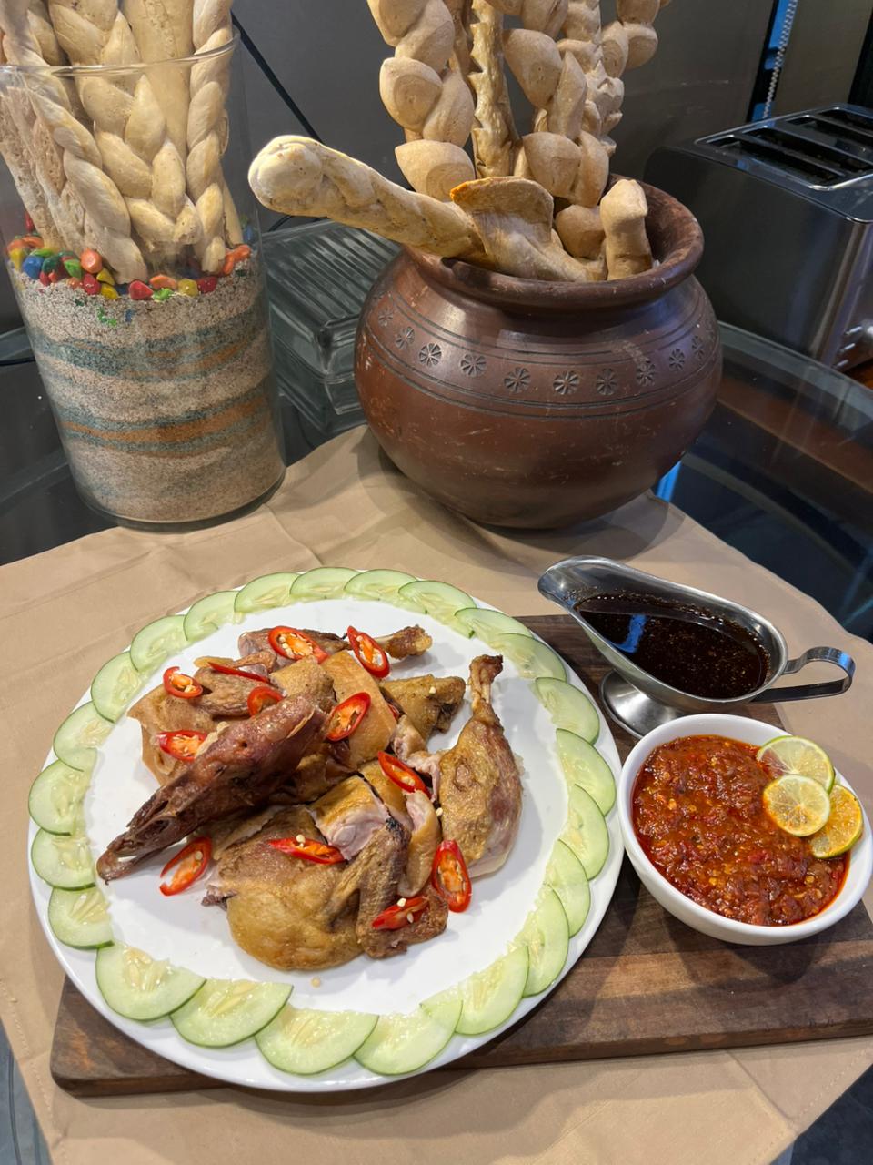 Meski menghadirkan konsep internasional, Hotel Aria Centra tetap mempertahankan kekayaan kuliner Nusantara. Salah satu menu favorit yang selalu tersedia setiap hari adalah Bebek Rempah Bumbu Hitam, hidangan khas bercita rasa kuat yang menjadi signature menu untuk melengkapi momen berbuka.