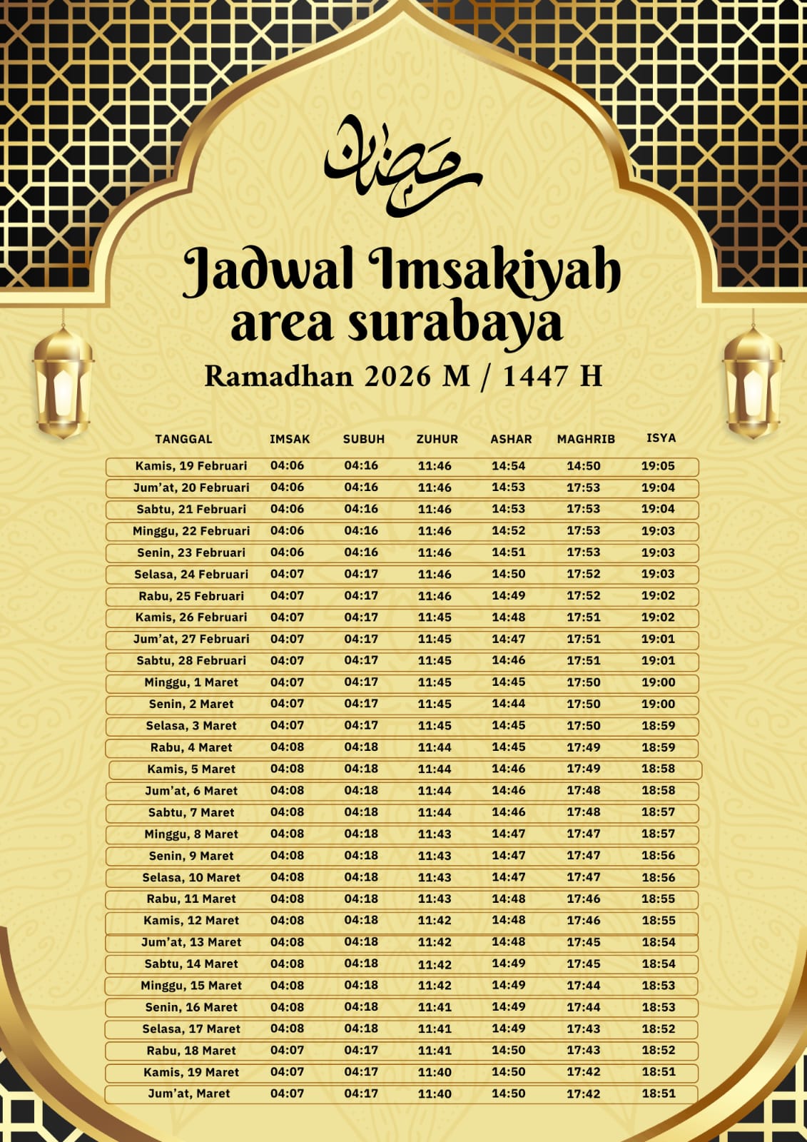 Jadwal Lengkap Imsakiyah Surabaya Ramadan 2026 (1447 H)