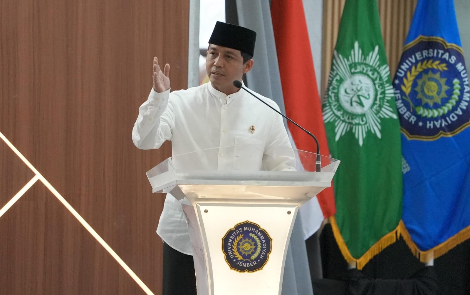 Menhut Raja Juli Antoni dalam acara Kajian Ramadhan 1447 H di Universitas Muhammadiyah Jember, Sabtu (21/2/2026).