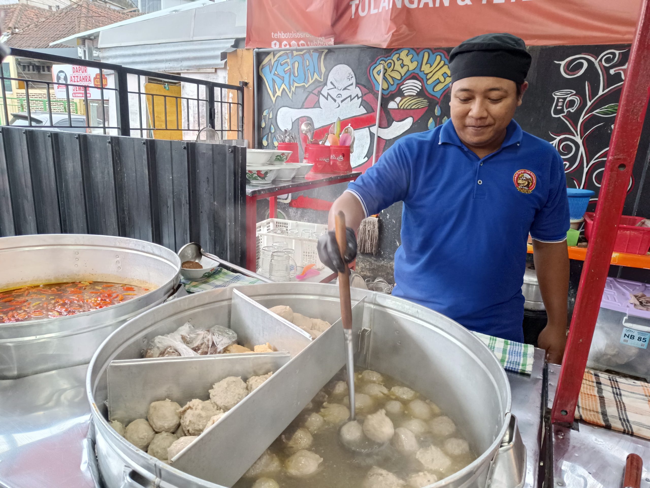 Tepat di sisi timur Alun-alun Kota Jember, warung ini menyajikan menu andalan Bakso Tulangan Iga Kuah Pedas. Uniknya, hidangan ini mengusung konsep “Pendalungan“, yakni perpaduan resep bumbu khas Jawa dan Madura yang menciptakan cita rasa manis, gurih, sekaligus pedas nendang.