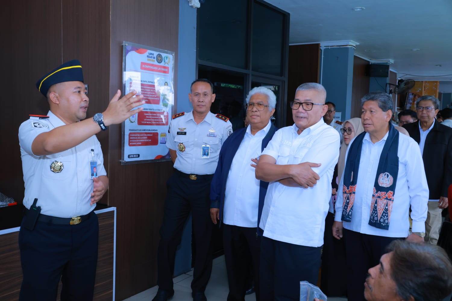 Rombongan tiba bersama Kepala Kantor Wilayah Direktorat Jenderal Pemasyarakatan Jawa Timur (Kanwil Ditjenpas Jatim) serta para Kepala Unit Pelaksana Teknis (Ka UPT). Setibanya di lokasi, rombongan langsung meninjau area layanan kunjungan yang saat itu dipadati keluarga warga binaan.