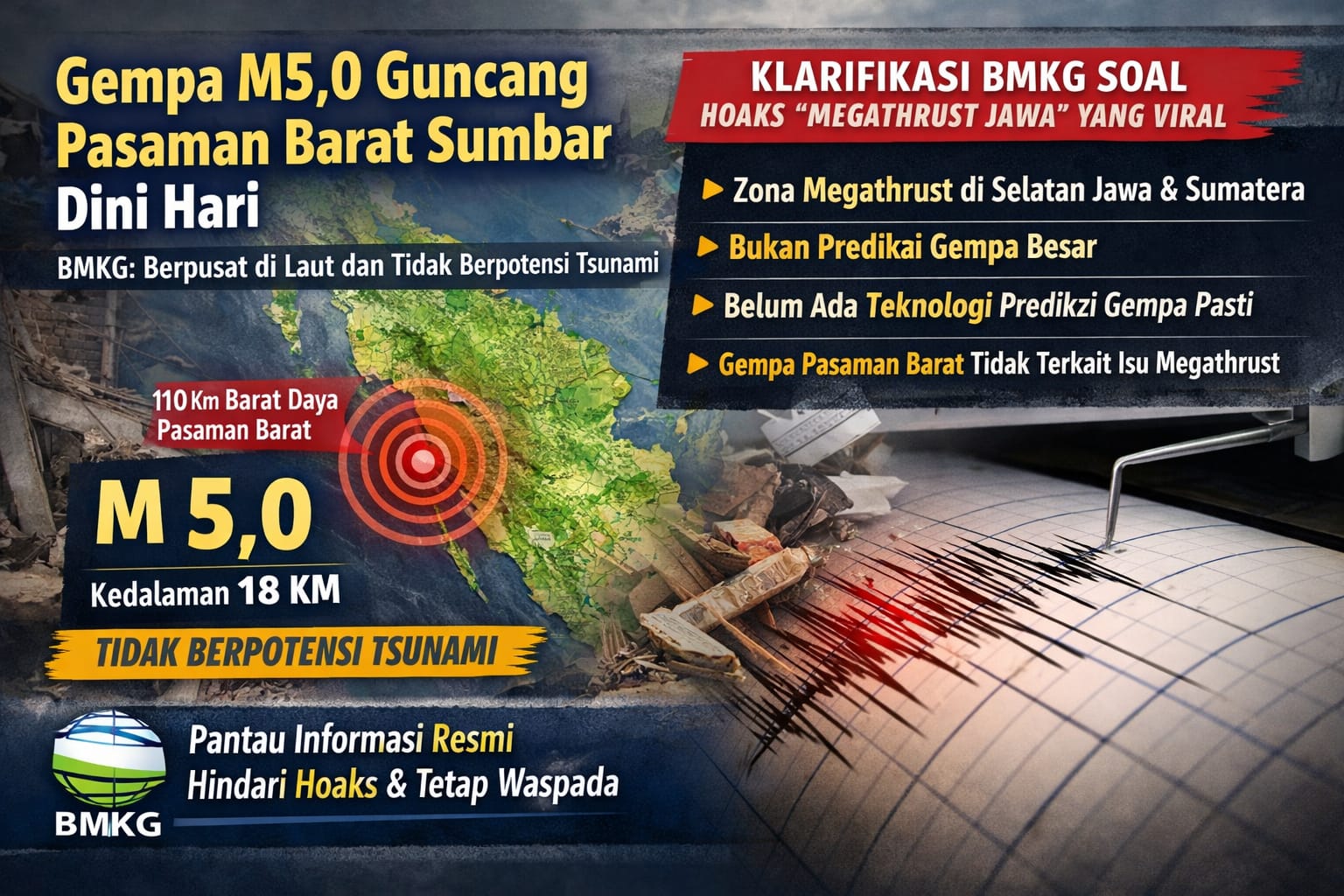 Dengan demikian, gempa M5,0 di Pasaman Barat ini tidak berkaitan dengan isu megathrust Jawa yang sempat viral di media sosial.