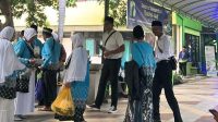 Suasana pembagian takjil berlangsung hangat dan penuh keakraban. Para jurnalis yang mengenakan atribut organisasi tampak menyapa para pengendara sambil menyerahkan paket takjil berisi makanan ringan dan minuman untuk berbuka puasa.