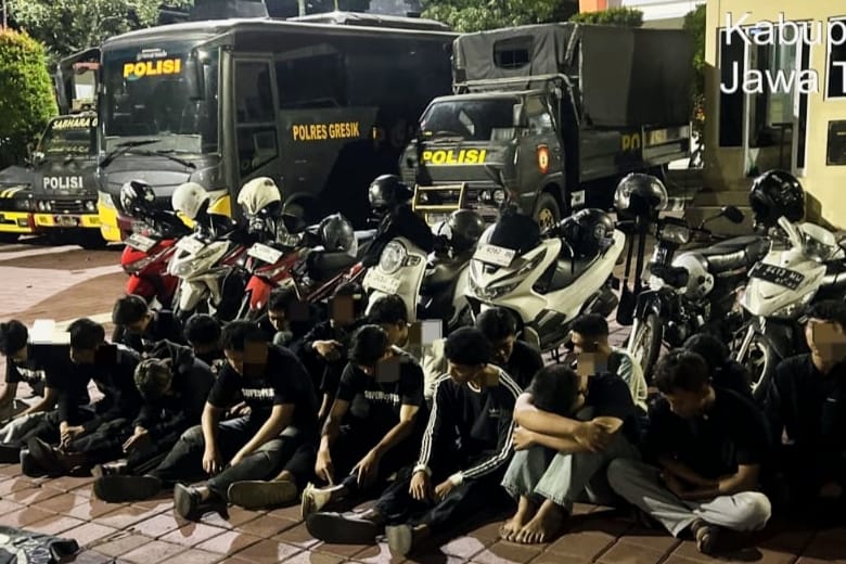 Merespons laporan tersebut, petugas bergerak cepat dan berhasil mencegat konvoi di depan UPT SMP Negeri 20 Kebomas, Jalan Mayjen Sungkono, sekitar pukul 01.30 WIB. Di lokasi tersebut, polisi mengamankan 21 pemuda yang seluruhnya masih berstatus pelajar, beserta 10 unit sepeda motor.