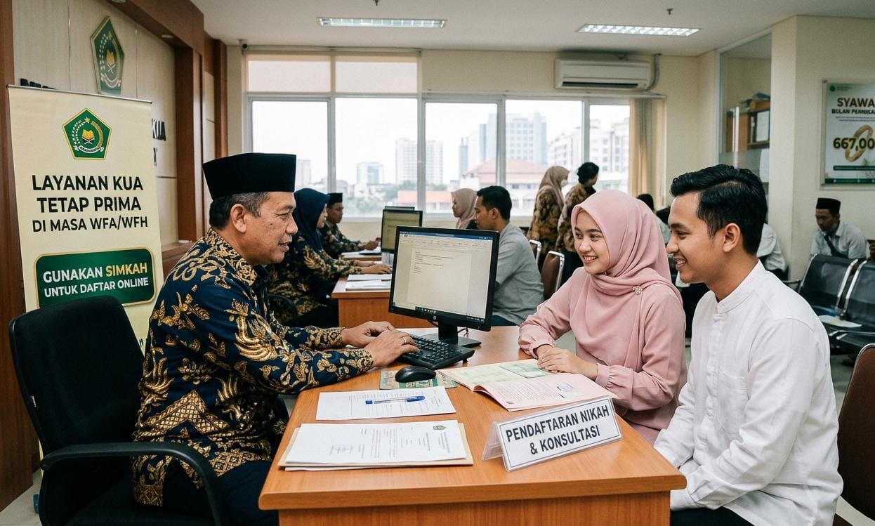 Merespons tingginya permintaan layanan pernikahan, Kemenag memastikan seluruh Kantor Urusan Agama (KUA) tetap beroperasi optimal. Hal ini ditegaskan meskipun pemerintah tengah menerapkan kebijakan Work From Anywhere (WFA) atau kerja jarak jauh bagi sebagian aparatur sipil negara.
