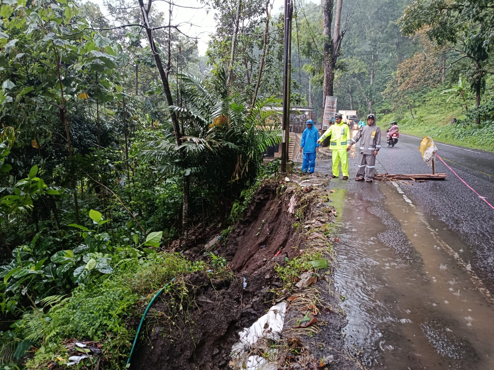 “Kami sudah pasang tanda peringatan agar pengendara waspada dan mengurangi kecepatan sebelum mendekati lokasi longsor,” tegas Aries.