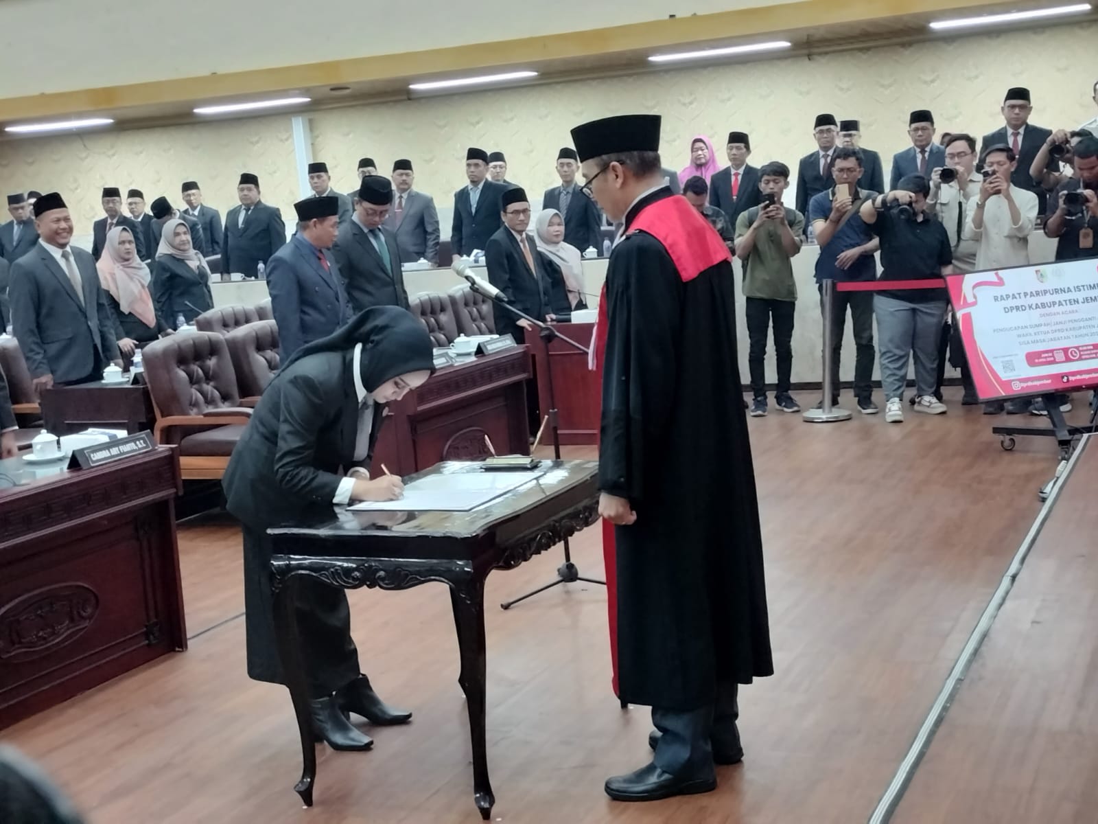 Prosesi pelantikan berlangsung khidmat dalam rapat paripurna di Gedung DPRD Jember. Fatmawati mengisi kekosongan jabatan pimpinan yang sebelumnya ditinggalkan oleh Dedy Dwi Setiawan.