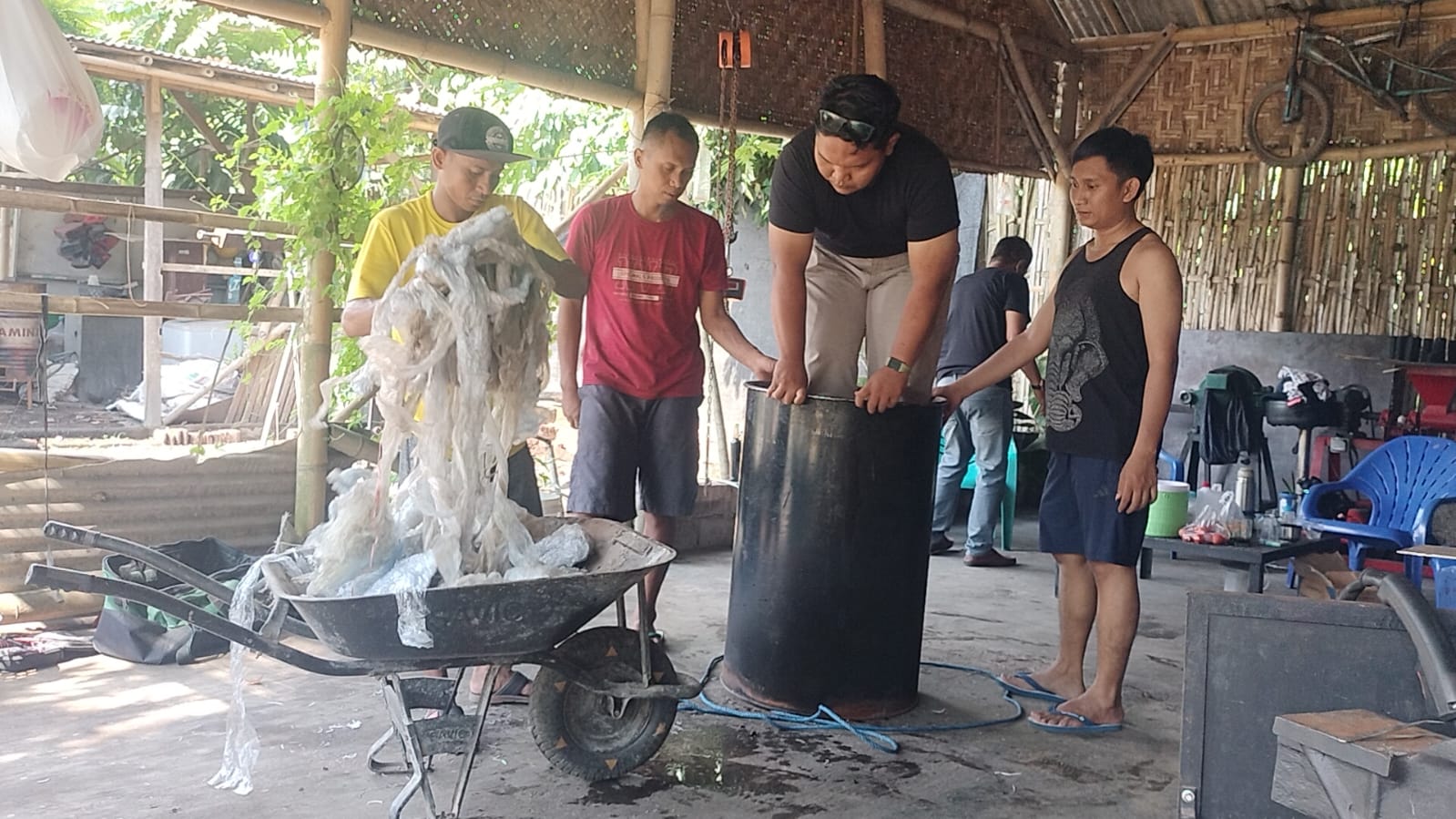Selain BBM, residu berupa karbon sisa pembakaran juga dimanfaatkan menjadi briket atau bahan kerajinan. Hal ini sejalan dengan moto kelompok mereka, yakni “Sampah adalah Energi”.