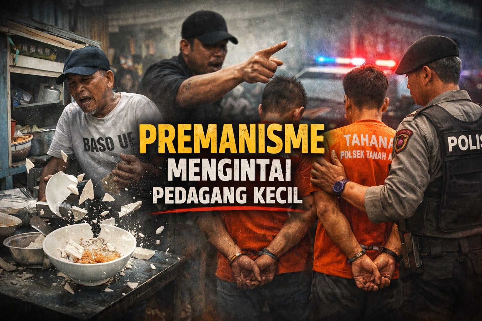 JAKARTA, HeadlineJatim.com — Aksi pemerasan terhadap pedagang kecil kembali mencuat ke ruang publik. Seorang penjual bakso di kawasan Kampung Bali, Tanah Abang, Jakarta Pusat, menjadi korban praktik “uang jatah” yang berujung perusakan dagangan.