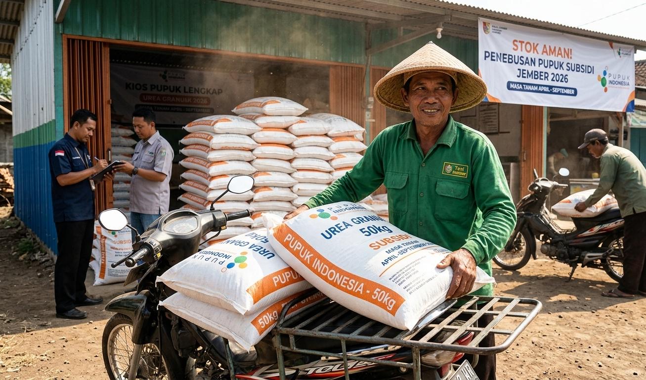 JEMBER, HeadlineJatim.com – Menjelang masa tanam periode April hingga September 2026, ketersediaan pupuk bersubsidi di Kabupaten Jember dipastikan dalam kondisi aman. PT Pupuk Indonesia (Persero) menjamin stok mencukupi meski terjadi lonjakan penebusan oleh petani yang memecahkan rekor tertinggi dalam tiga tahun terakhir.