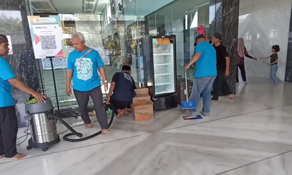 Sejumlah relawan sedang membersihkan masjid.(Istimewa)