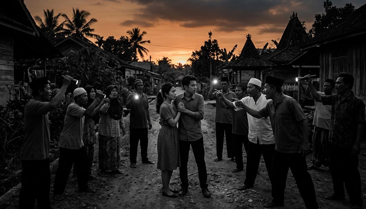 Kronologi bermula saat petugas ronda mencurigai aktivitas di balik rimbunan bambu dekat jembatan gantung yang dikenal gelap dan sepi. Saat diperiksa menggunakan senter, pasangan yang berstatus pacaran ini kedapatan tengah melakukan perbuatan tidak senonoh.