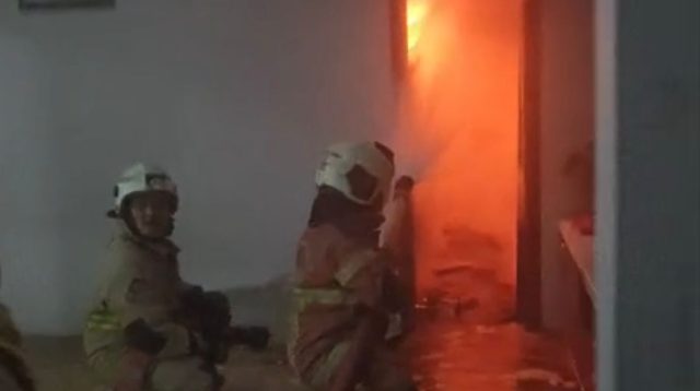 Petugas pemadam kebakaran berjibaku memadamkan api yang membakar gudang di kawasan Manyar Tirto Asri. (Foto;Istimewa) (Baca Selengkapnya)